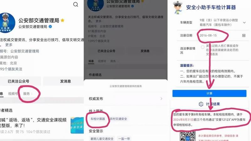 為了方便廣大車主查詢自己名下車輛的上線檢驗(yàn)時(shí)間,公安部交通管理局開發(fā)了“車檢計(jì)算器”小程序,只需選擇注冊登記時(shí)間,即刻就能知道結(jié)果!